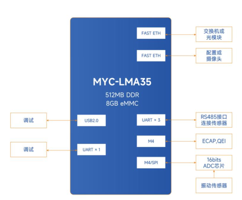 MYC-LMA35核心板在振動監(jiān)測領域具有強大的應用潛力。MA35D1芯片內(nèi)置的DDR內(nèi)存,使得數(shù)據(jù)處理更加高效,支持復雜的硬件設計;芯片集成的M4內(nèi)核能夠有效解決實時數(shù)據(jù)采集的問題,能夠靈活配置ADC、串口、SPI和IIC等外設,確保系統(tǒng)在高頻率下的穩(wěn)定運行;核心板支持LINUX操作系統(tǒng),方便程序的編制與維護,并通過以太網(wǎng)和4G模塊實現(xiàn)更優(yōu)的連接性能,增強了系統(tǒng)的兼容性和穩(wěn)定性;M4內(nèi)核與A35內(nèi)核之間通過共享DDR內(nèi)存進行數(shù)據(jù)傳輸,確保了在微秒級別內(nèi)完成大量數(shù)據(jù)的傳遞。以上特性確保MYC-LMA35在振動監(jiān)測中能夠更好地應用。
