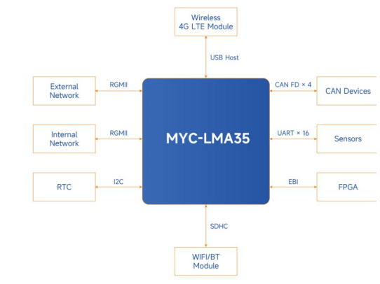 在工業(yè)網(wǎng)關上,米爾基于MA35D1核心板展現(xiàn)了強大的應用能力。核心板支持USB HOST,方便連接4G模組,確保工業(yè)設備能夠進行實時數(shù)據(jù)傳輸;配備兩路千兆以太網(wǎng)接口,確保高速數(shù)據(jù)傳輸;原生4路CAN FD接口可用于連接CAN 設備,提升工業(yè)自動化系統(tǒng)的互聯(lián)互通性;核心板能夠通過EBI與FPGA進行高效數(shù)據(jù)交互,拓展系統(tǒng)的處理能力;原生UART能夠連接傳感器等多種外部設備,可檢測環(huán)境并采集數(shù)據(jù);可利用SDHC連接WIFI/BT模塊,增強無線通信的靈活性;I2C接口向外拓展連接RTC,確保系統(tǒng)時間準確性;核心板還支持LINUX操作系統(tǒng),提供靈活的開發(fā)環(huán)境,適合工業(yè)應用的定制需求?;谶@些性能MYC-LMA35核心板在工業(yè)網(wǎng)關中廣泛應用,處理和管理來自不同設備的數(shù)據(jù)流。