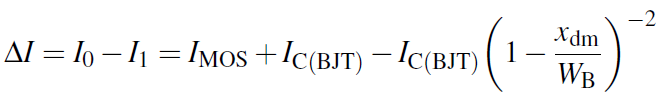 當(dāng)門極電壓為零后, 溝道電流迅速下降為零。由于基區(qū)過剩載流子復(fù)合的原因,I(t)不能迅速下降為零,這時(shí),I(t)=IC(BJT)(t)。依據(jù)電荷控制原理