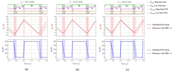 圖 3低 f s時(shí)的 ZVD 行為(a);理想 f s 時(shí)的ZVD 行為(b);以及高 f s時(shí)的 ZVD 行為(c)。