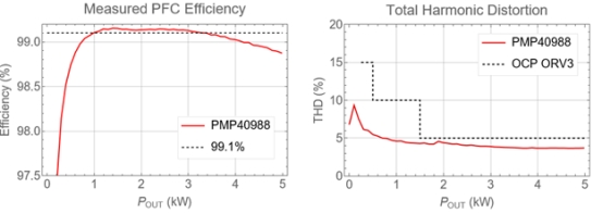 圖 6整個(gè)負(fù)載范圍內(nèi)的原型效率和 THD。