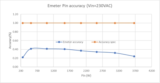 圖 8: 3.6 kW 高線的電子表測試結(jié)果,Vin 設置為 230 VAC,顯示電子表精度遠高于 M-CRPS 精度規(guī)格。