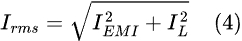 I EMI是超前測量電流 (I L ) 90 度的無功電流;因此,公式 4 可計算出總輸入電流: