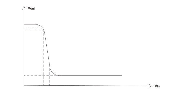 逆變器電路是數(shù)字電路設(shè)計(jì)中的基本組成部分之一(不要與功率逆變器混淆)。反相器可以直接應(yīng)用于邏輯門和其他更復(fù)雜的數(shù)字電路的設(shè)計(jì)。理想逆變器的傳輸特性如下所示。