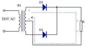 全波整流電路每個整流二極管上流過的電流只是負載電流的一半,比半波整流小一倍。