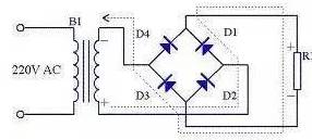 由于全波整流電路需要特制的變壓器,制作起來比較麻煩,于是出現(xiàn)了一種橋式整流電路。這種整流電路使用普通的變壓器,但是比全波整流多用了兩個(gè)整流二極管。由于四個(gè)整流二極管連接成電橋形式,所以稱這種整流電路為橋式整流電路。