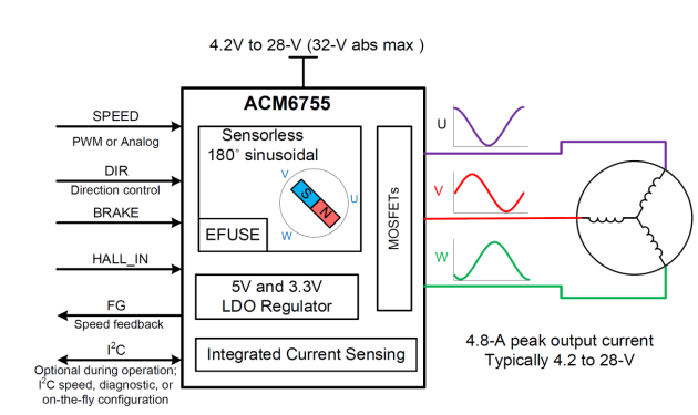 ACM6755 支持3霍爾應(yīng)用的全集成三相直流無(wú)刷電機(jī)驅(qū)動(dòng)IC方案