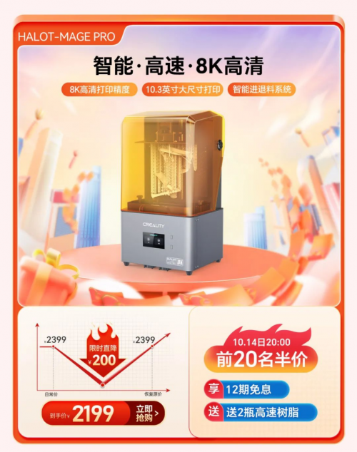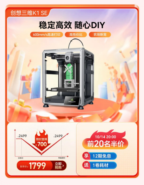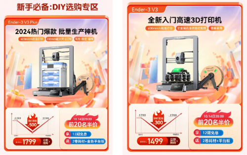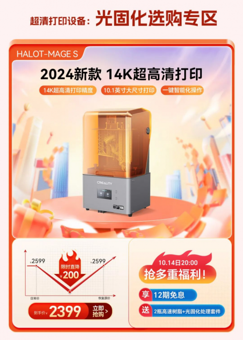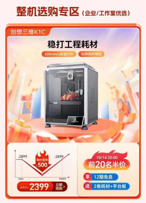 備受矚目的雙十一購物節(jié)今年再度升級,提前至10月14日拉開帷幕,作為全球領(lǐng)先的3D打印設(shè)備生產(chǎn)商,創(chuàng)想三維深知每一位消費(fèi)者對3D打印的深切熱愛與無限期待,已為您精心策劃了一場滿載驚喜的購物狂歡,特此推出了更為豐富多元的優(yōu)惠活動,包含20個半價搶購名額、現(xiàn)金紅包返還、購買設(shè)備即贈送耗材/樹脂/炭包/平臺板/創(chuàng)想云會員,以及限時折扣、多買多贈等多重玩法。期待每一位渴望創(chuàng)新與創(chuàng)造的您,在這場年度大促中,輕松邂逅心儀的3D打印設(shè)備,共同探索創(chuàng)意與技術(shù)交織的美妙世界。