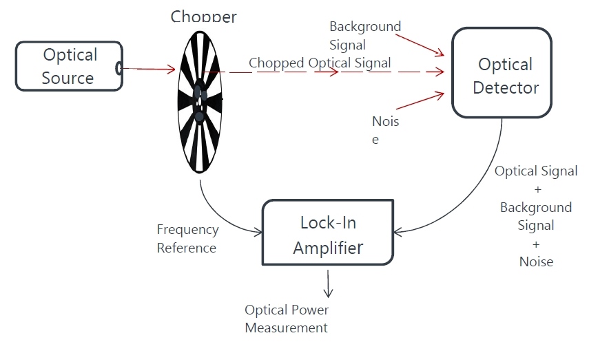 具有鎖定放大器的高性能的關(guān)鍵是要在要測量的信號的調(diào)制頻率和參考信號的頻率之間保持精確的匹配。在這些應(yīng)用中,使用光學(xué)斬波器來調(diào)制信號( Figure 1) .