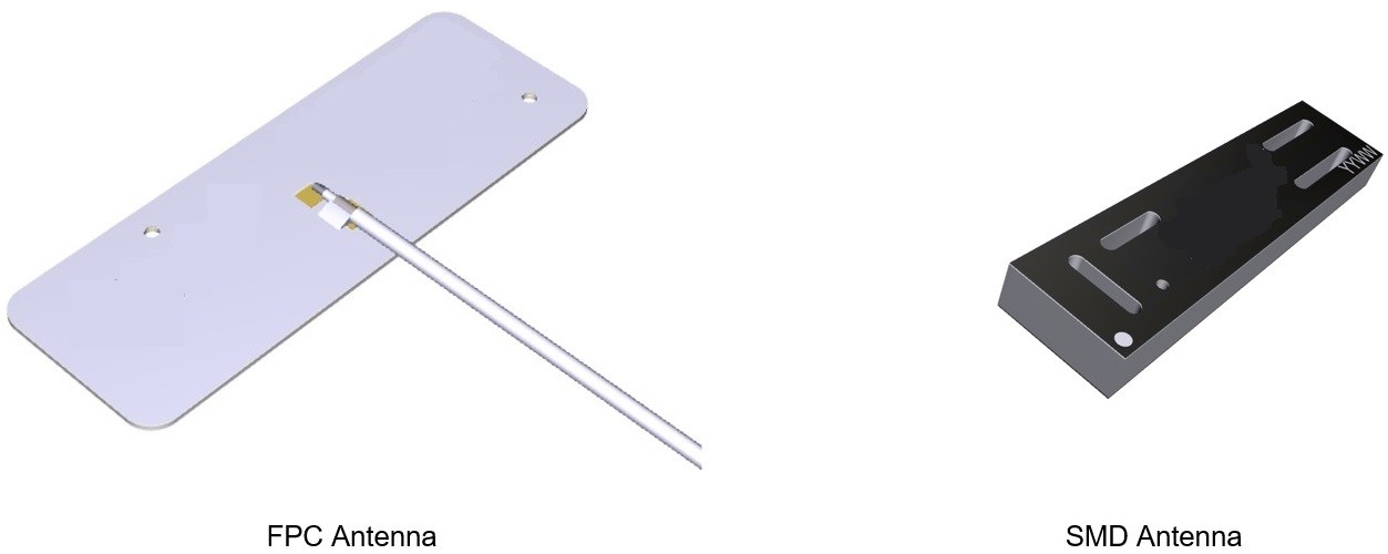 表面安裝設(shè)備(SMD)天線在設(shè)計(jì)中是有用的,因?yàn)樗鼈冎徽加煤苄〉目臻g,但也有其他的選擇。天線是以靈活印刷電路(FPC)形式提供的,這為某些情況下的設(shè)計(jì)提供了一個有用的選擇。圖5顯示了SMD和FPC天線。