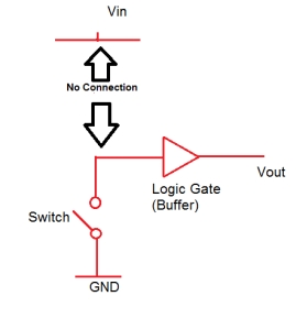 圖2沒有通過電阻連接到電力軌,邏輯門輸入是浮動(dòng)的,當(dāng)開關(guān)打開時(shí)不是在1或0,而當(dāng)開關(guān)關(guān)閉時(shí),它是在一個(gè)固定的邏輯0。
