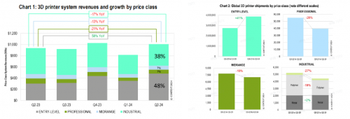 國(guó)際權(quán)威市場(chǎng)研究機(jī)構(gòu)CONTEXT的報(bào)告顯示,2024年第二季度,全球3D打印機(jī)出貨量趨勢(shì)于第一季度基本相同,入門(mén)級(jí)設(shè)備繼續(xù)呈現(xiàn)爆炸式增長(zhǎng),出貨量環(huán)比增長(zhǎng)34%,同比增長(zhǎng)65%。
