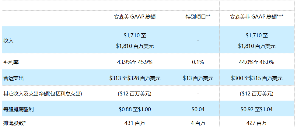 下表概列安森美預計2024年第四季度的GAAP及非GAAP展望: