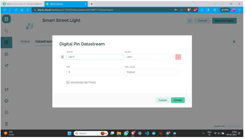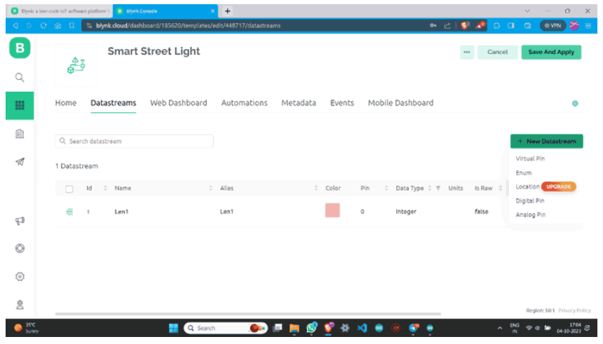 步驟7:一旦在blynk網(wǎng)站上創(chuàng)建了一個數(shù)據(jù)流,它將看起來像下面這樣