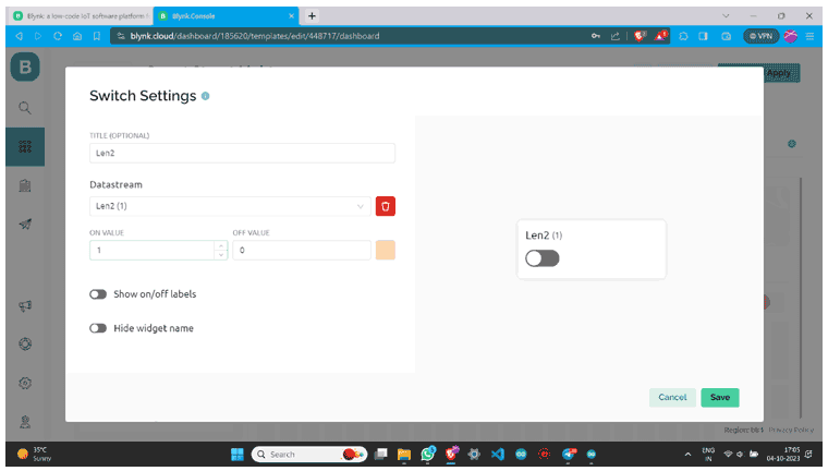 步驟9:進入“Web Dashboard”并添加Switch小部件。