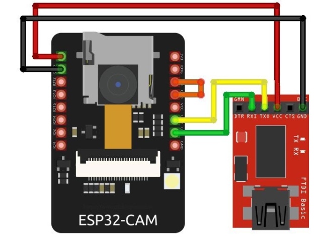 將FTDI模塊的TX連接到ESP32-CAM的U0RXD。