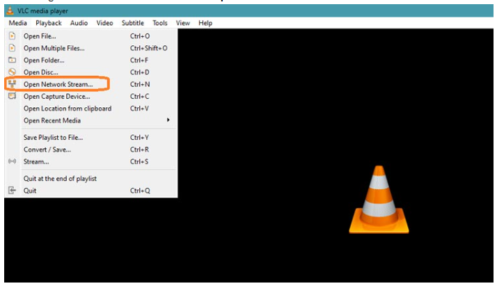 在VLC中,進入菜單中的“媒體”,選擇“打開網(wǎng)絡(luò)流”。