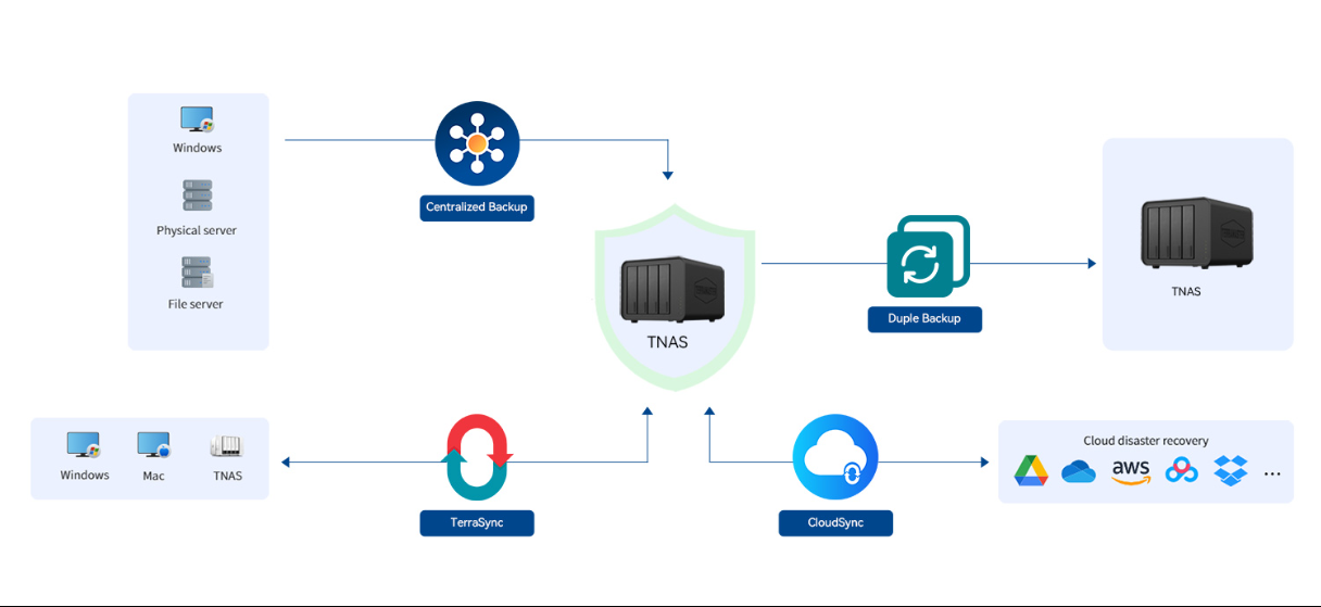 此外,該設(shè)備還支持BBS全場景備份解決方案,包括中央備份、雙重備份、USB備份、CloudSync等多種備份同步功能,提供了全方位的數(shù)據(jù)安全保障。通過Centralized Backup應(yīng)用,可以實(shí)現(xiàn)團(tuán)隊(duì)成員終端電腦的自動(dòng)備份,包括服務(wù)器、虛擬機(jī)等文件資源的備份,再配合TerraSync應(yīng)用實(shí)現(xiàn)各種終端多設(shè)備數(shù)據(jù)同步,既保證了數(shù)據(jù)安全,又方便了團(tuán)隊(duì)成員之間的數(shù)據(jù)共享和協(xié)作。