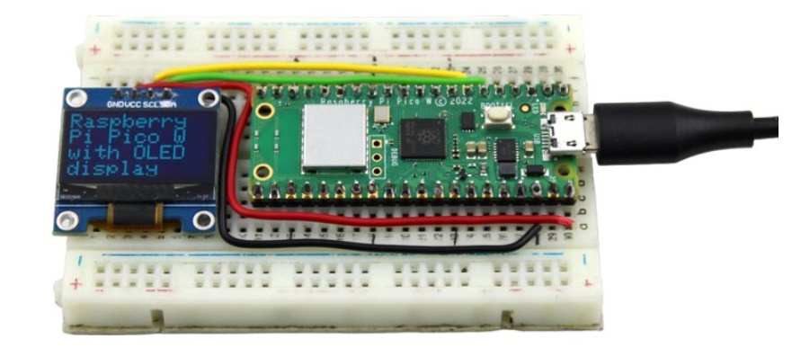 OLED的Vcc或電源引腳應(yīng)連接到Raspberry Pi Pico W的VBUS引腳上。