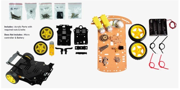 我們已經(jīng)使用了一個亞克力激光切割板與所有必要的配件兼容。它是精確切割與所有空間提供的組件配件使用螺絲刀。您也可以參考各種在線平臺購買此類類型的底盤原型