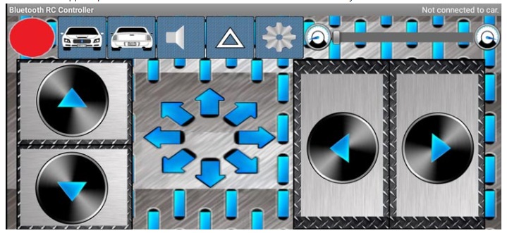 將機器人汽車與我們的智能手機連接是一個非常簡單的過程,我們只需要從Playstore下載一個名為“Bluetooth RC car”的應(yīng)用程序。該應(yīng)用程序有一個預(yù)先構(gòu)建的界面來控制任何類型的藍牙RC機器人。該應(yīng)用程序有圖形按鈕,滑塊,甚至傳感器(例如,加速度計)直觀控制。它還有各種其他內(nèi)置功能來控制不同的功能,比如打開/關(guān)閉汽車的前燈和后燈等等。