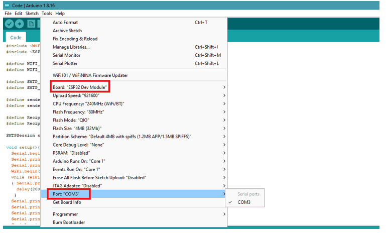 ?搭建ESP32微控制器板用Arduino IDE軟件開發(fā)環(huán)境,包括必要的Wi-Fi和電子郵件通信庫。