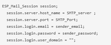 我們通過創(chuàng)建一個名為“ESP_Mail_Session”的類的“Session”對象來配置會話,并為之前定義為變量的類成員提供所有細(xì)節(jié)。