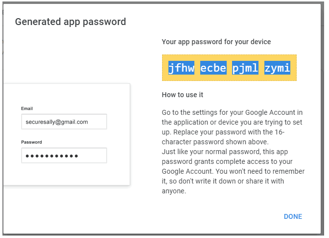 ?在這里,你會看到一個窗口,在那里你可以為你想要與谷歌帳戶一起使用的應(yīng)用程序創(chuàng)建一個應(yīng)用程序密碼。在選定的字段中,選擇應(yīng)用程序作為郵件類型,選擇設(shè)備作為其他類型。
