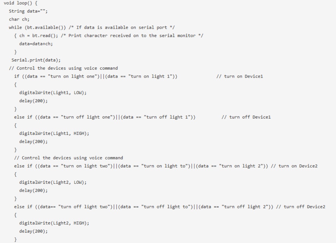在上面的循環(huán)部分,我們已經(jīng)完成了所有的處理任務(wù),如讀取串行端口、比較文本和執(zhí)行任務(wù)。
