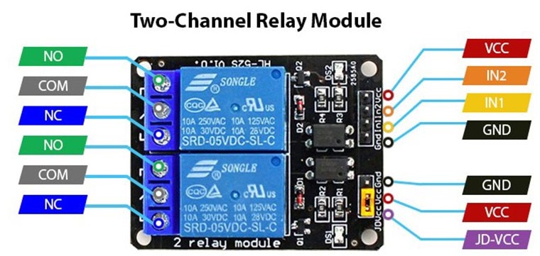 ?Vcc引腳:用于上電繼電器模塊。它通常連接到5v。
