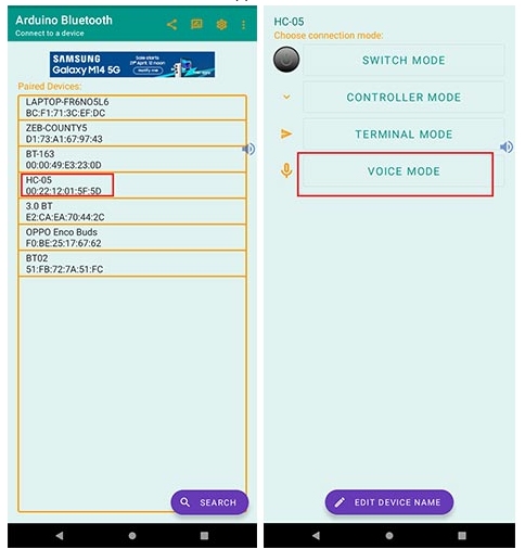 ?啟動您的項目并將您的設(shè)備與HC-05配對。