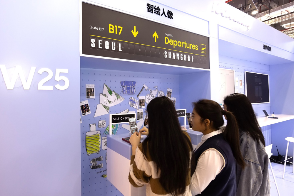 參觀者在三星展臺體驗“智繪人像”
