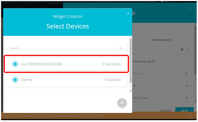 一旦集成完成,我們的LoRa設(shè)備將發(fā)送數(shù)據(jù)到TTN服務(wù)器,TTN服務(wù)器將自動定向到Ubidots服務(wù)器。你可以打開你的Ubidots儀表板,在設(shè)備頁面下,我們的設(shè)備會自動顯示。