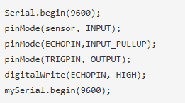 然后在setup()函數中定義觸發(fā)引腳作為輸出,超聲波傳感器的回波引腳和傾斜傳感器的信號引腳作為輸入,并在9600處啟動串行通信,以便在串行監(jiān)視器上顯示結果。