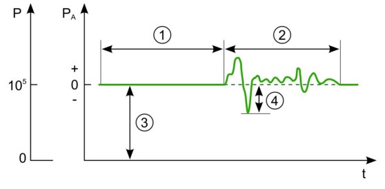 聲壓可以用一個(gè)麥克風(fēng)測(cè)量.測(cè)量聲強(qiáng)更為復(fù)雜,至少需要兩個(gè)測(cè)量?jī)x器,例如兩個(gè)麥克風(fēng)。聲壓通常是相對(duì)于名義大氣壓測(cè)量的,對(duì)于許多聲音來(lái)說(shuō),它是一個(gè)可變的數(shù)量( 圖1 ).