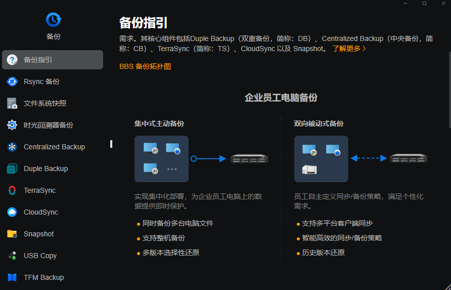 數(shù)據(jù)備份是企業(yè)數(shù)據(jù)管理的關(guān)鍵環(huán)節(jié)。鐵威馬F6-424 Max提供了BBS全場(chǎng)景備份解決方案,支持中央備份、雙重備份以及云備份等多種備份功能,有效減少手動(dòng)操作的繁瑣,確保重要數(shù)據(jù)的實(shí)時(shí)同步與保護(hù)。特別是對(duì)于經(jīng)常需要處理敏感信息的行業(yè),如金融、醫(yī)療等,F6-424 Max的數(shù)據(jù)加密技術(shù)和安全協(xié)議,更是為數(shù)據(jù)安全加上了一道堅(jiān)實(shí)的防線。