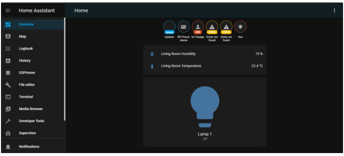 如果你沒有在你的儀表板上打開編輯模式,ESPHome將已經(jīng)在概覽頁面上可見,否則,手動(dòng)添加它。