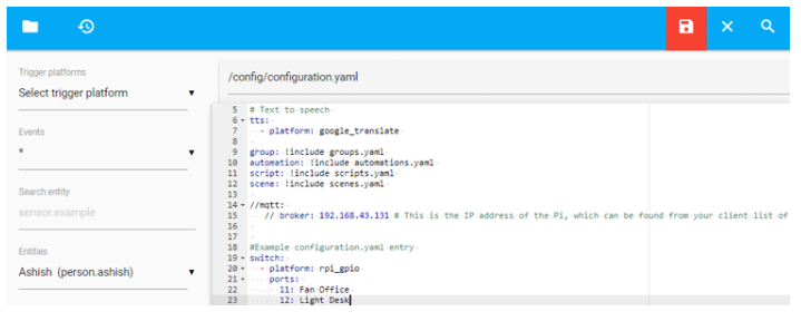 現(xiàn)在,我們將通過家庭助理控制連接到樹莓派GPIO的LED,以熟悉添加組件和樓宇自動化。我們將添加開關(guān)來打開和關(guān)閉兩個(gè)led。在我們可以連接LED之前,我們需要配置配置。yaml文件。