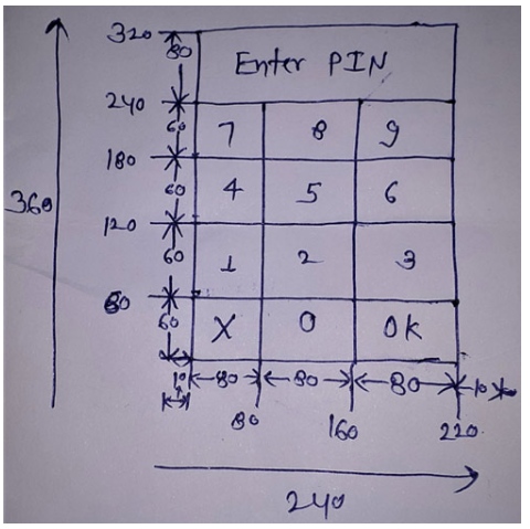初始化變量和引腳之后,現(xiàn)在我們可以進(jìn)入主要的編程部分。如前所述,這個程序涉及四個部分,第一部分是創(chuàng)建一個pin鎖的UI。我只是簡單地做了一個基本布局的pin鎖與12個按鈕和一個顯示單元。TFT顯示庫允許您繪制直線、矩形、圓形、圖表、字符串等等。我使用直線和矩形來設(shè)計UI。每個框的寬度為80像素,高度為60像素。