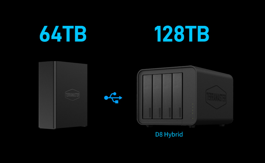 別看鐵威馬F8 SSD Plus體積小,但其性能卻一點(diǎn)也不含糊。它采用了高性能的處理器和萬(wàn)兆網(wǎng)口,提供了高速的數(shù)據(jù)讀寫速度,確保了數(shù)據(jù)傳輸?shù)母咝浴M瑫r(shí),F8 SSD Plus不僅可以提供高達(dá)64TB的存儲(chǔ)容量,還通過(guò)USB3.2 10Gbps接口,F8 SSD Plus還能輕松連接USB外置存儲(chǔ)設(shè)備,實(shí)現(xiàn)存儲(chǔ)空間的進(jìn)一步擴(kuò)展。例如,與鐵威馬 D8 Hybrid搭配使用,可額外增加高達(dá)128TB的存儲(chǔ)空間,滿足您不斷增長(zhǎng)的數(shù)據(jù)存儲(chǔ)需求。