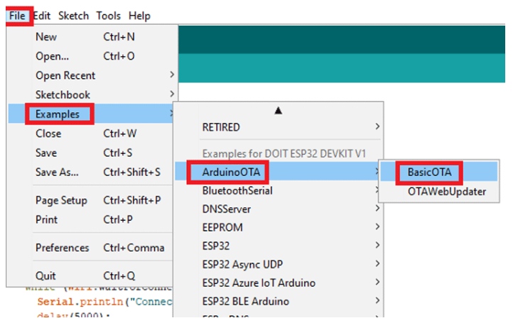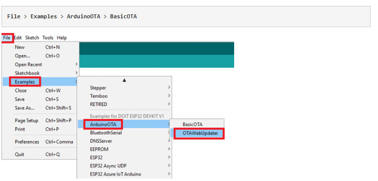 有兩種方法可以在ESP32板上執(zhí)行OTA更新。它們是Basic OTA,通過Arduino IDE發(fā)送更新,以及Web update OTA,通過網(wǎng)頁/ Web瀏覽器發(fā)送更新。