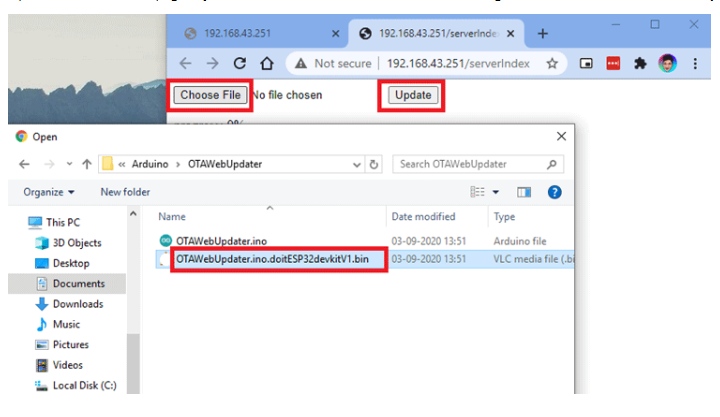 在瀏覽器中打開/serverIndex頁面。選擇生成的。bin文件,然后單擊Update。