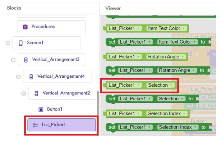 現(xiàn)在在下一步中,再次轉(zhuǎn)到“List_Picker”塊并選擇“List_Picker”。文本到代碼塊如下圖所示。