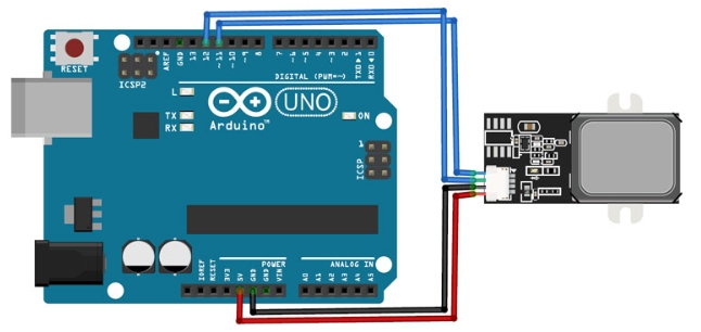 在下一行中,定義連接指紋傳感器的Arduino Uno引腳。指紋傳感器的發(fā)送引腳連接到Arduino的引腳11,接收器連接到Arduino的引腳12。