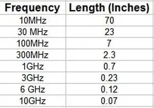 對于 FR-4 PCB 材料的表格形式,波長的 1/8 大約為: