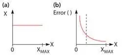 圖 1. (a) 絕對誤差在測量范圍內(nèi)可以保持恒定。 (b) 相對誤差在測量范圍內(nèi)變化。