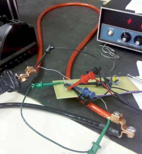 我們的設置使用了四英尺的 JSC 1666 AWG 4 電纜。絕緣體沿其長度被切開,并將 34 號漆包線插入絕緣體下方。電路中使用了NCS333運算放大器。由于運算放大器的共模電壓等于其電源軌,因此它必須具有軌到軌輸入能力(或使用更高的電源)。此外,它應該是一個零漂移(斬波)放大器,因為標準軌到軌運算放大器在正軌附近的性能通常較差。