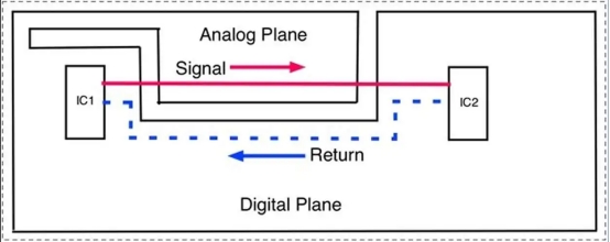 您現(xiàn)在可以理解為什么模擬電路應(yīng)遠(yuǎn)離數(shù)字或其他噪聲電路。防止這些“分散”的返回電流與噪聲電路的返回電流混合。這就是分區(qū)如此重要的主要原因。