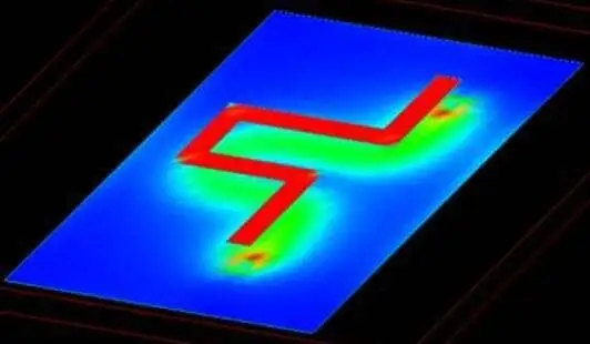 在進(jìn)行電路布局之前,我們必須首先了解并可視化高速電路走線下返回電流如何流動以及電磁場如何分布。在低頻(大約低于 50 kHz)下,返回電流往往遵循最低電阻的路徑。它們傾向于沿著源和負(fù)載之間的最短距離行進(jìn),如圖 1中的綠色區(qū)域模擬的那樣。
