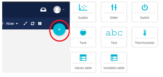 之后,導(dǎo)航到瀏覽器,打開(kāi)Ubidots Dashboard,點(diǎn)擊“Create Widget”按鈕,向下滾動(dòng),選擇“溫度計(jì)”Widget。